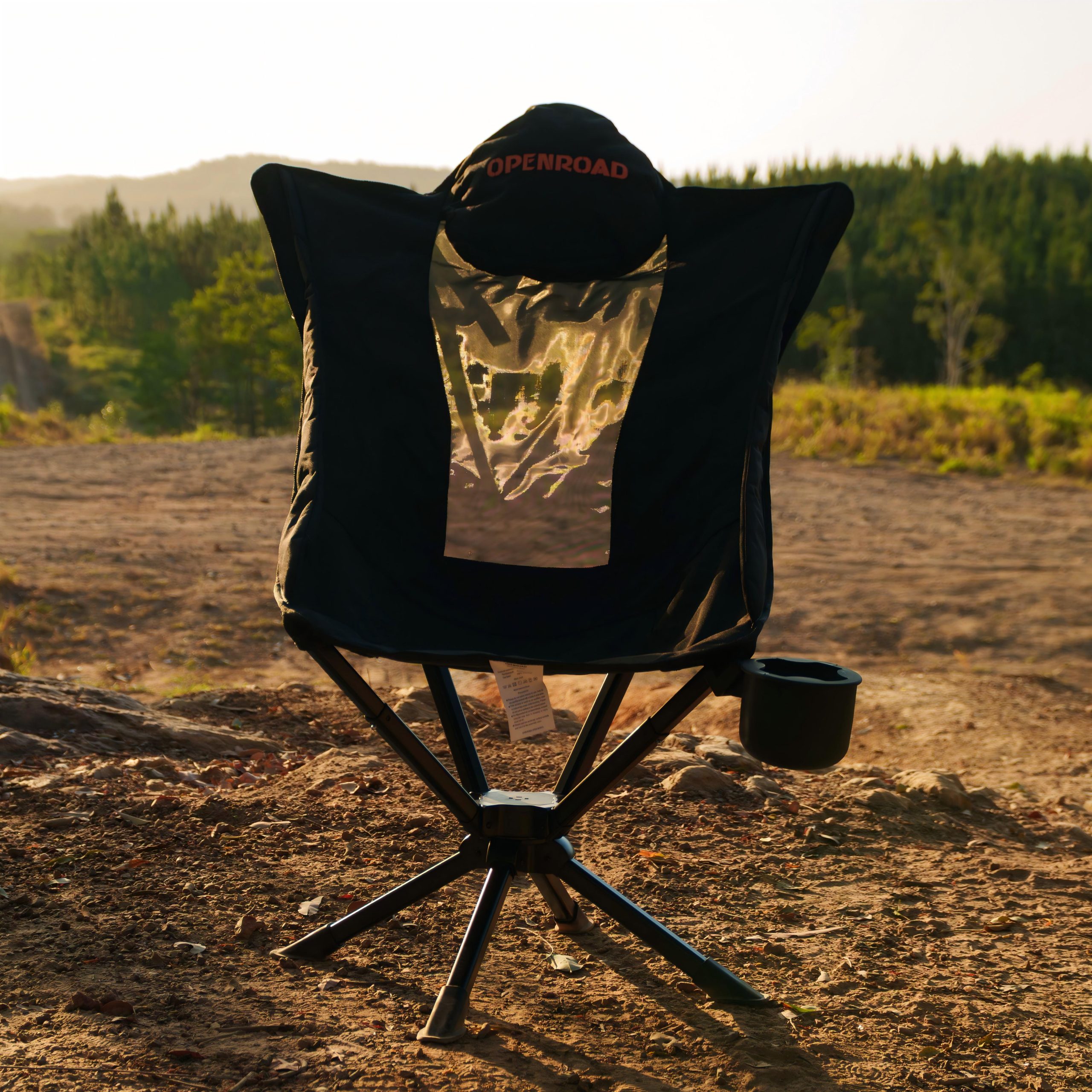 כיסא קמפינג 360* מתקפל וארגונומי מבית OPENROAD עם שלדת פלדה חזקה, ריפוד נוח ובד Oxford עמיד – פתרון מושלם לישיבה נוחה בטיולי שטח וקמפינג.